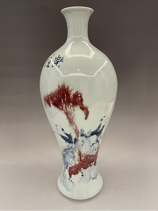 2021年,創(chuàng)作的柴窯青花瓶《松火千年別樣紅》在第十七屆中(深圳)國際文化產(chǎn)業(yè)博覽交易會(huì)“中國工藝美術(shù)文化創(chuàng)意大賽”評(píng)選中榮獲“金”獎(jiǎng)。